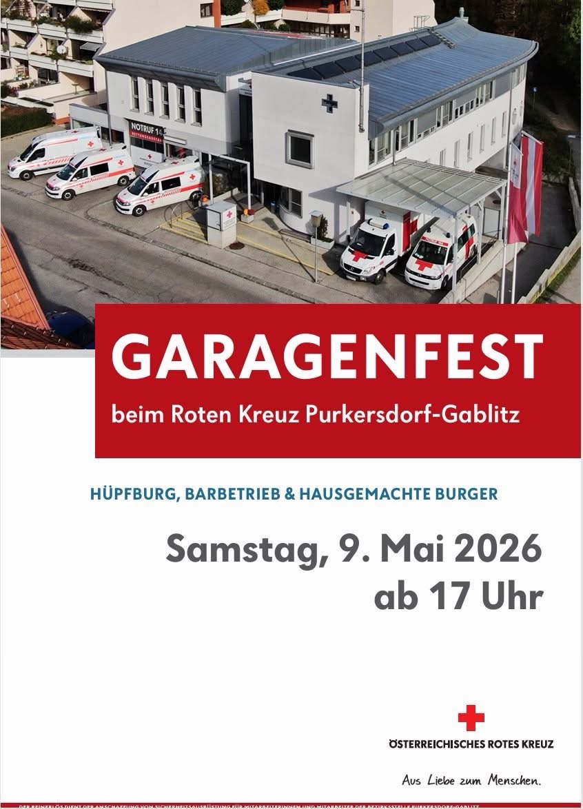 Gablitz Garagenfest Information Purkersdorf Rot Kreuz Garagenfest des RK Purkersdorf-Gablitz: 9.5.2026 admin 7 April, 2026 Keine Kommentare