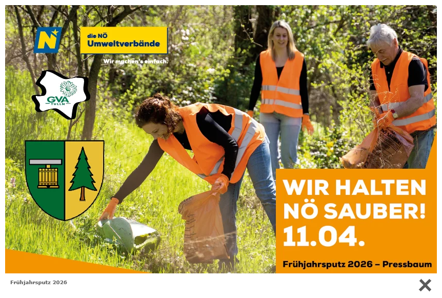 Frühjahrsputz Pressbaum 11.4.2026 Startpunkt: Sportplatz Pressbaum admin 19 Februar, 2026 Keine Kommentare